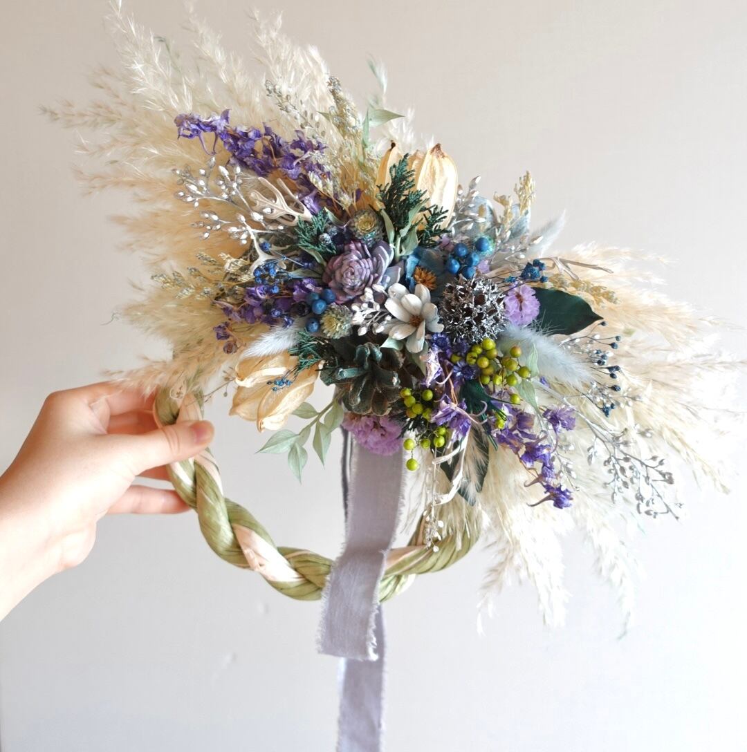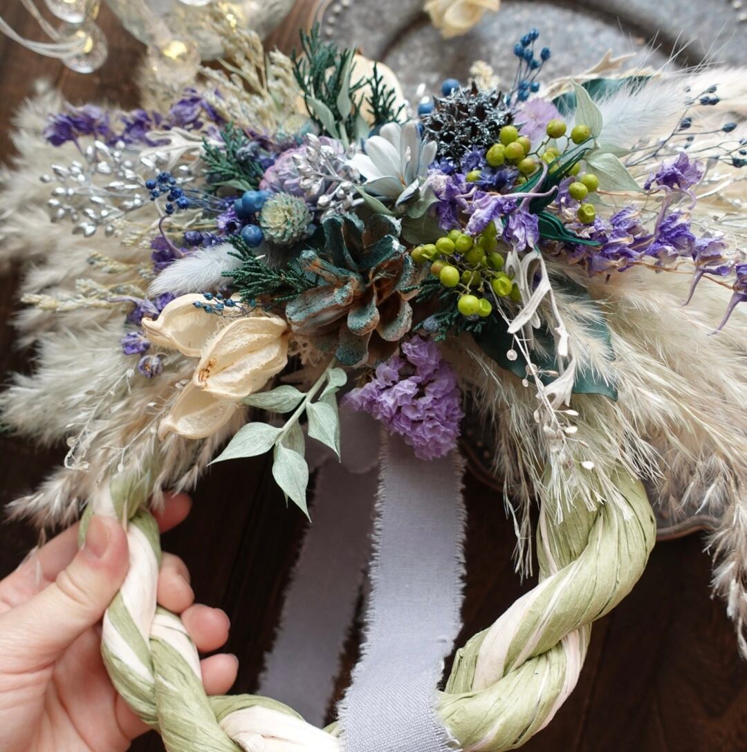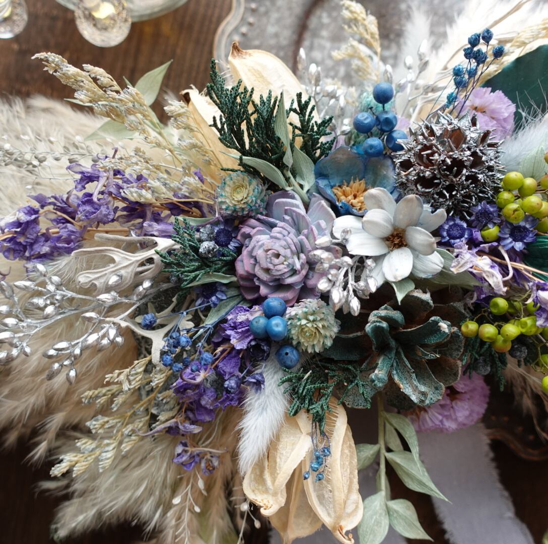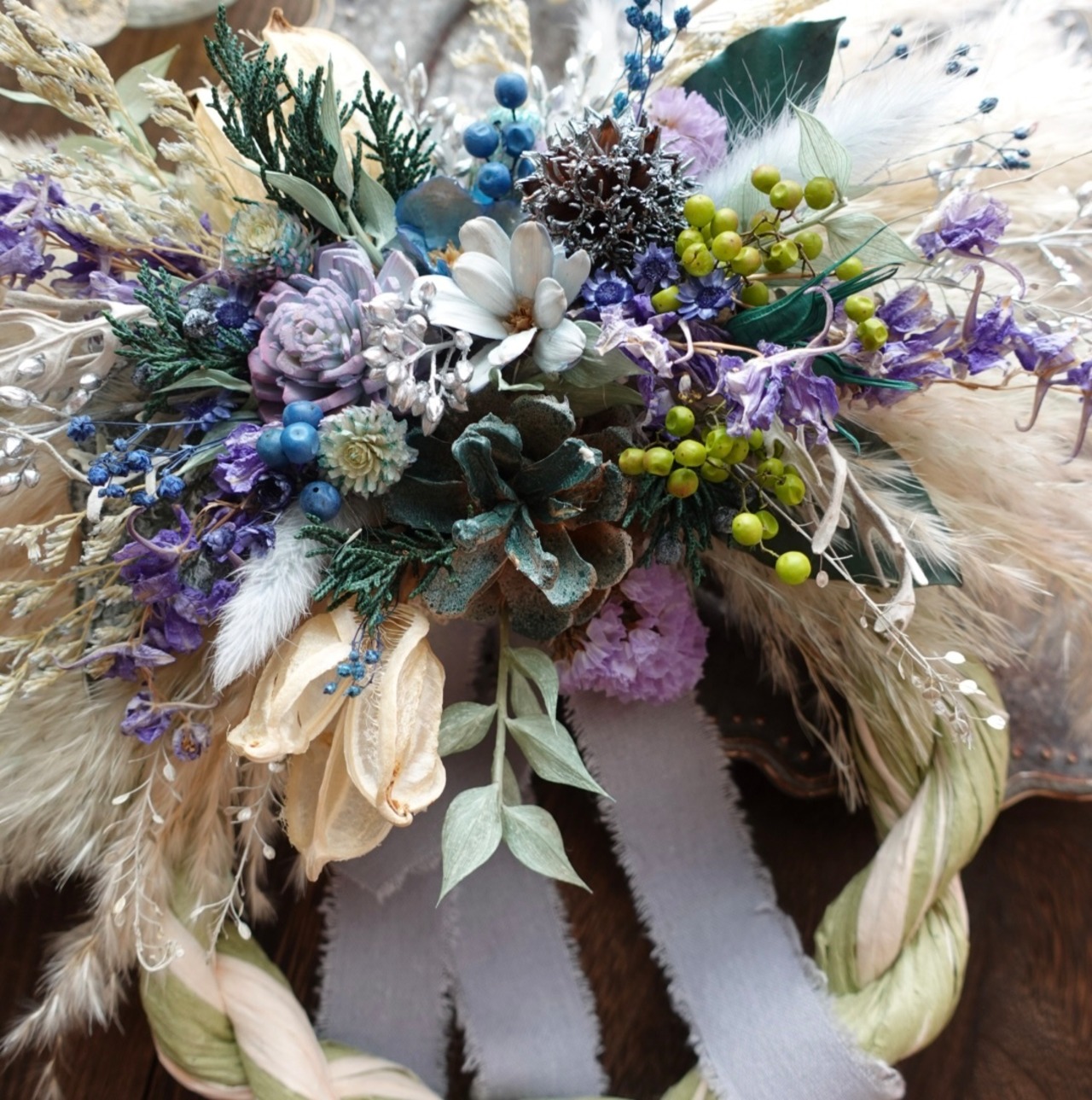 手にとって下さったお客様が少しでも長く楽しんでもらように 退色しにくい花材で仕上げるよう心がけています。