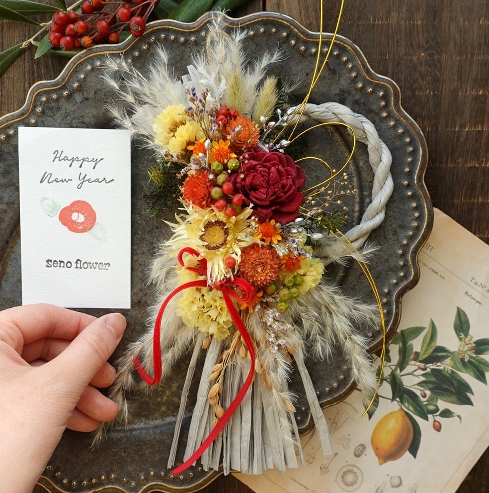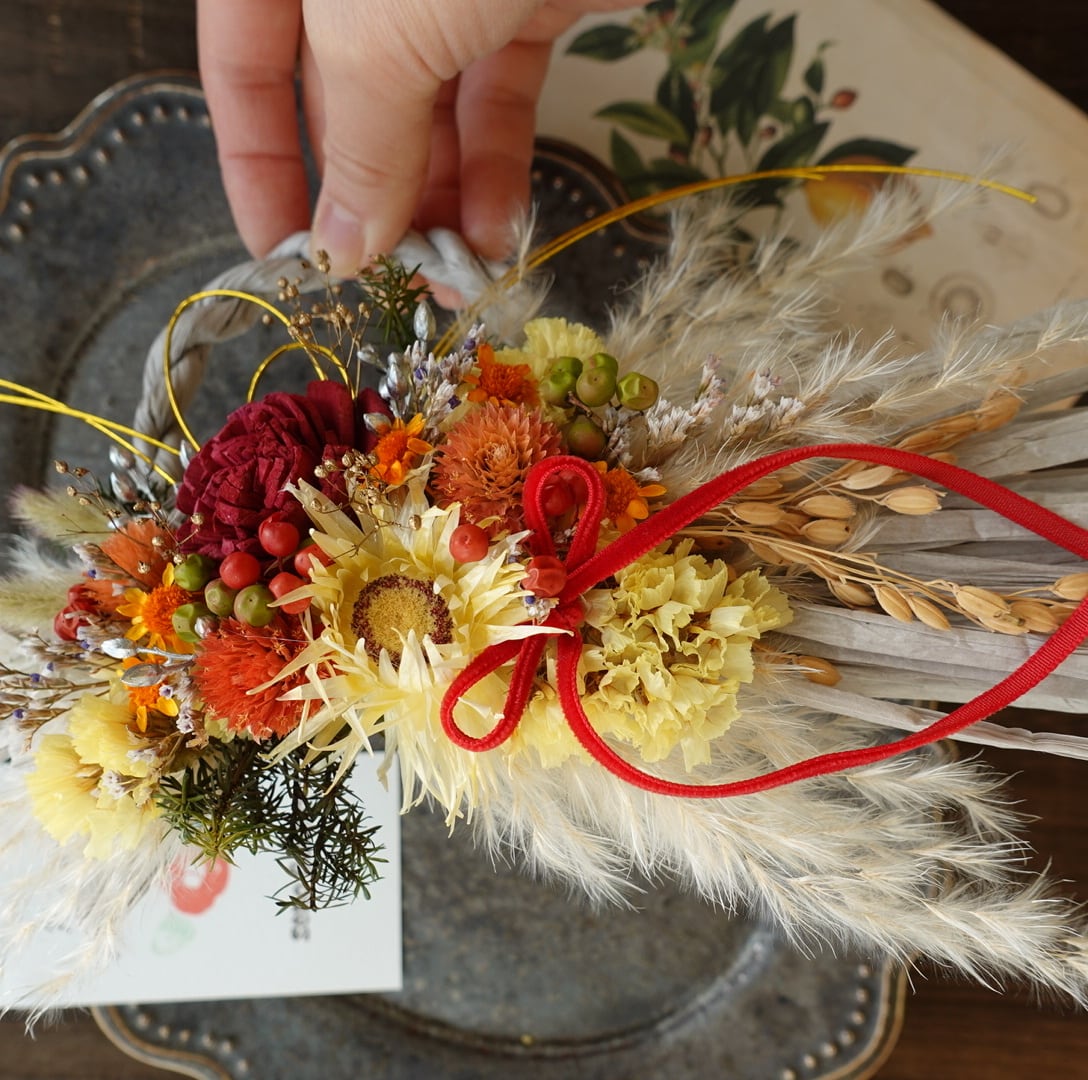 手にとって下さったお客様が少しでも長く楽しんでもらように 退色しにくい花材で仕上げるよう心がけています。