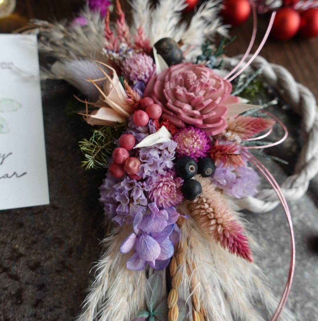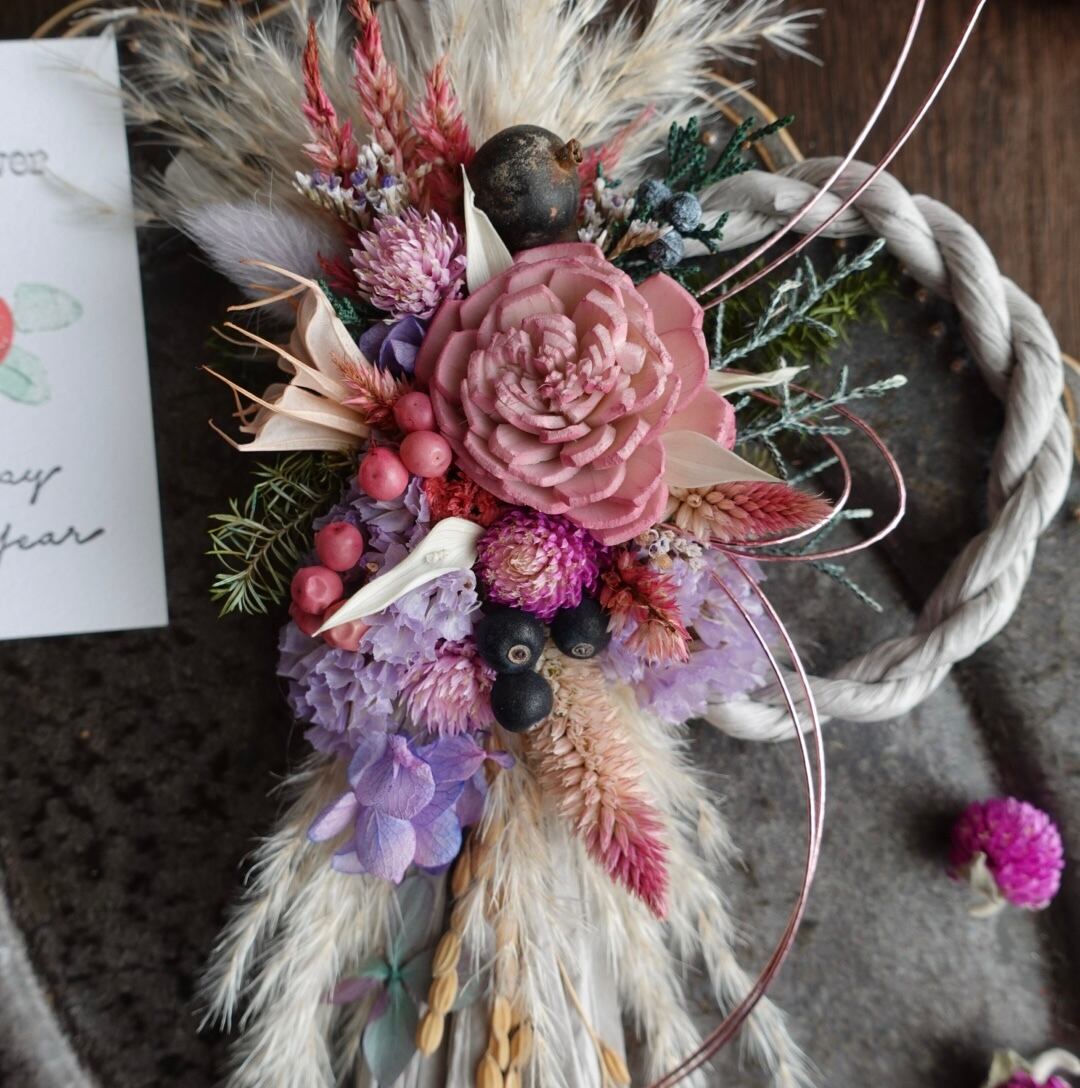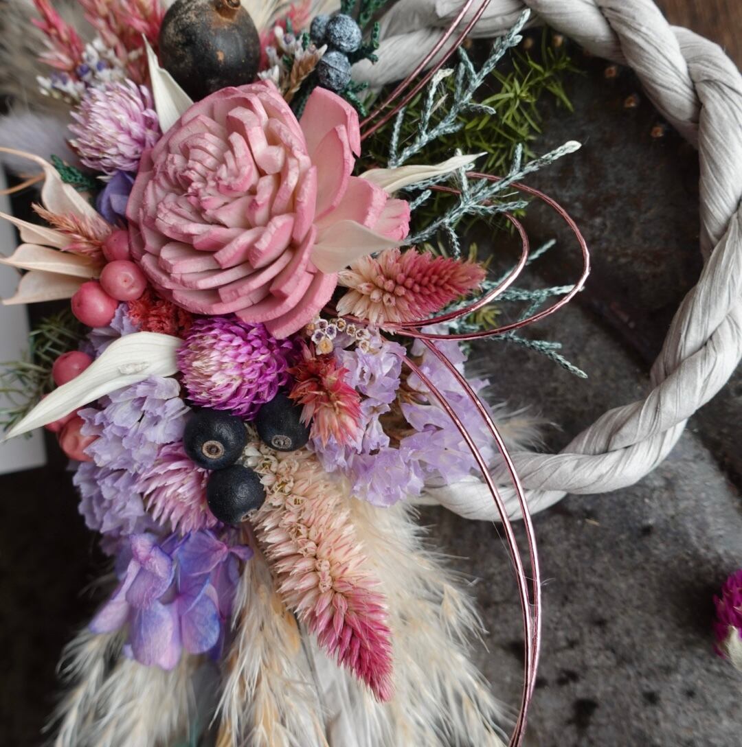 手にとって下さったお客様が少しでも長く楽しんでもらように 退色しにくい花材で仕上げるよう心がけています。