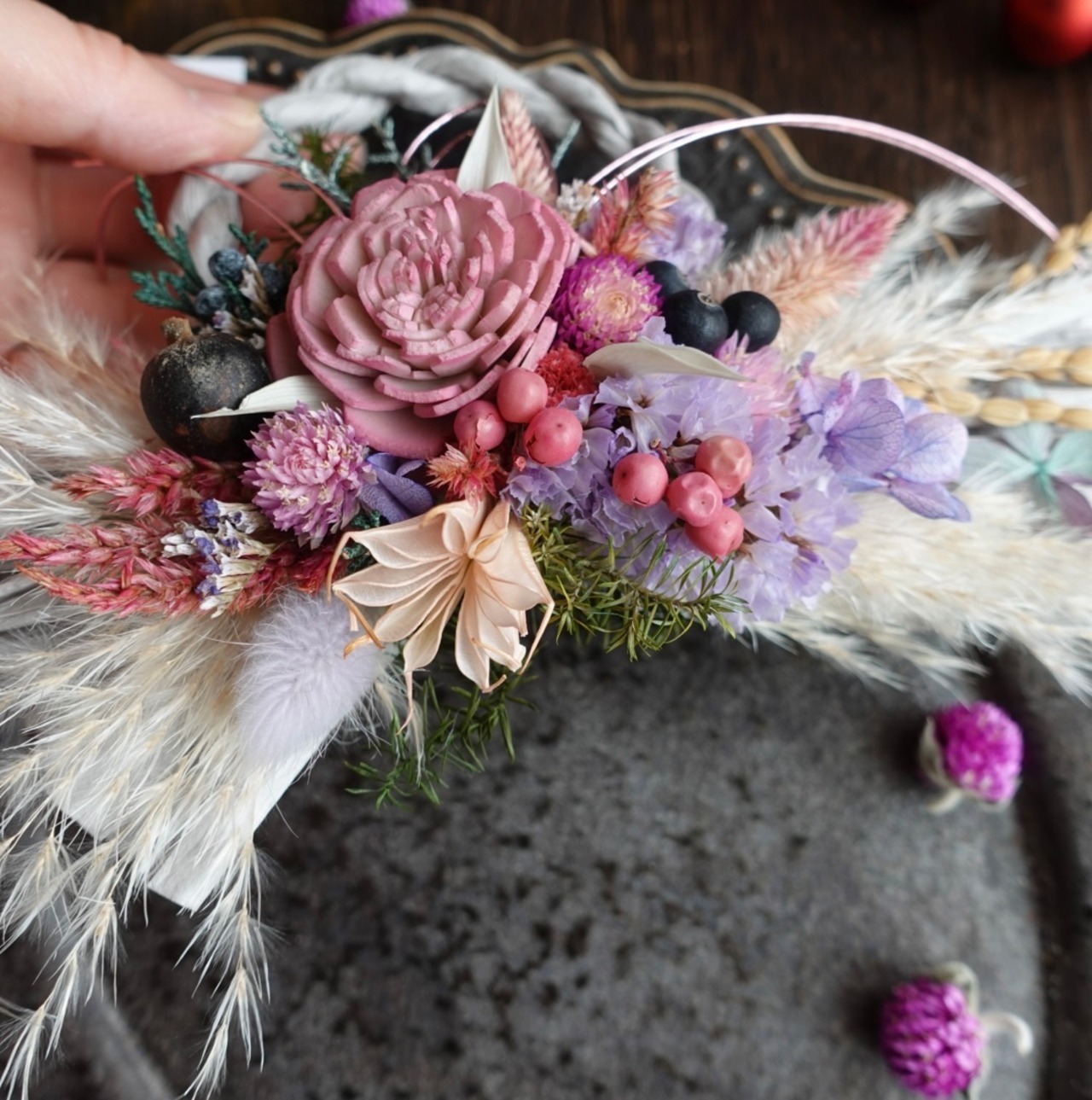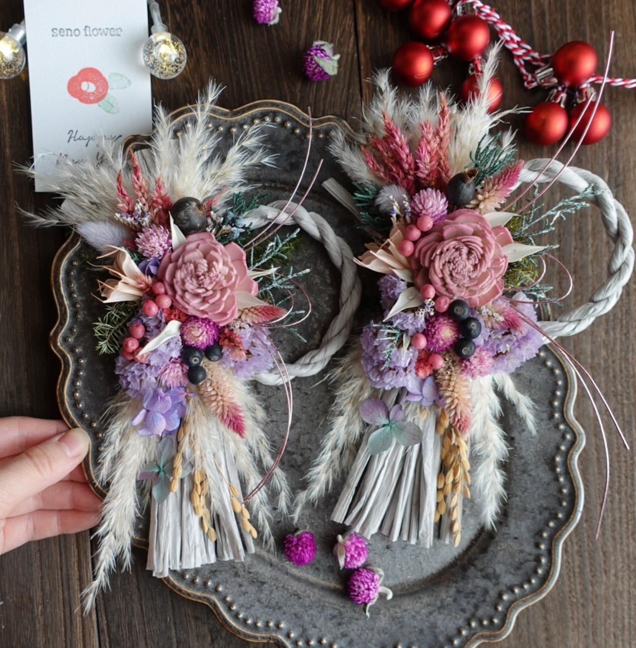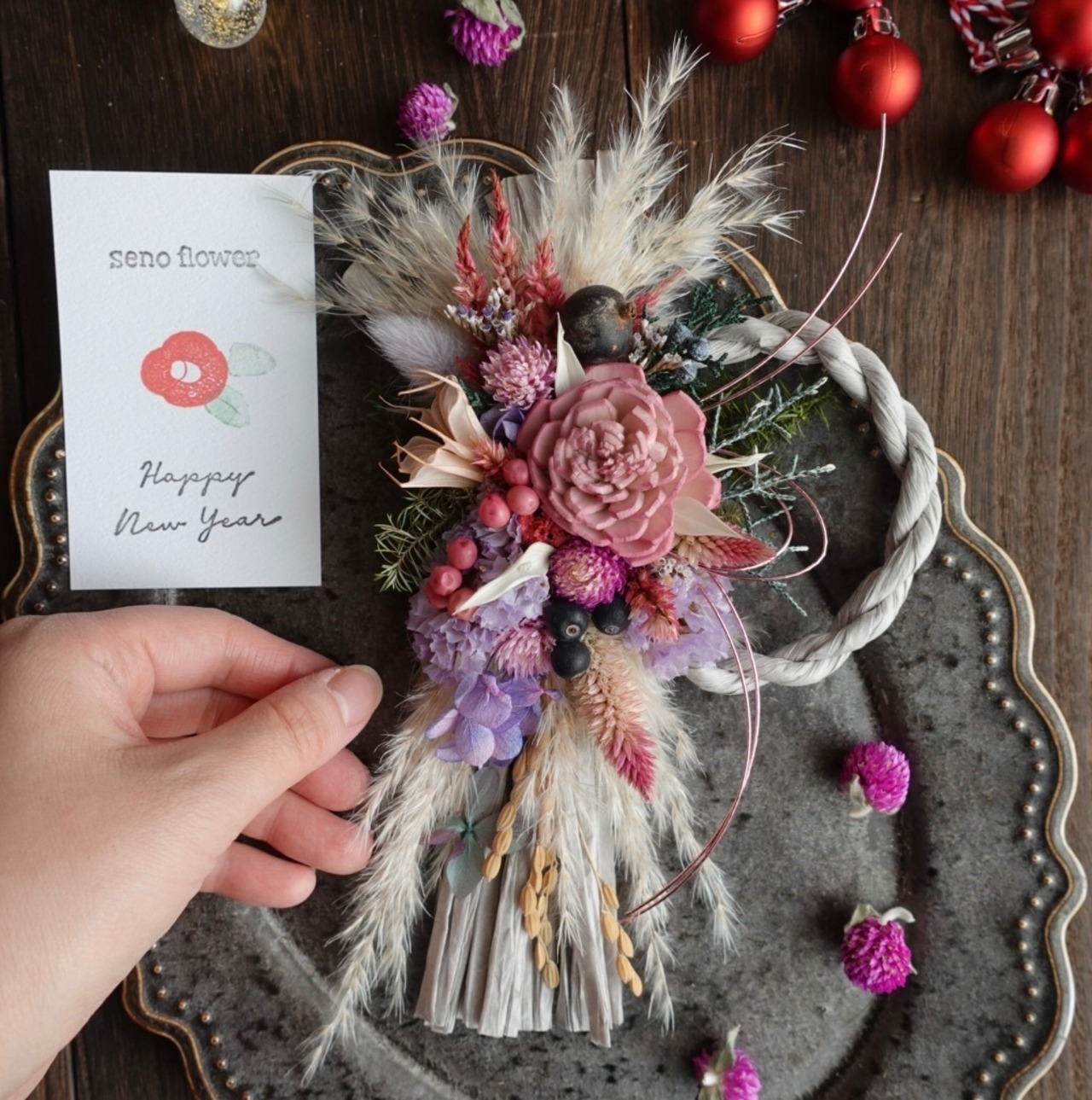 手にとって下さったお客様が少しでも長く楽しんでもらように 退色しにくい花材で仕上げるよう心がけています。