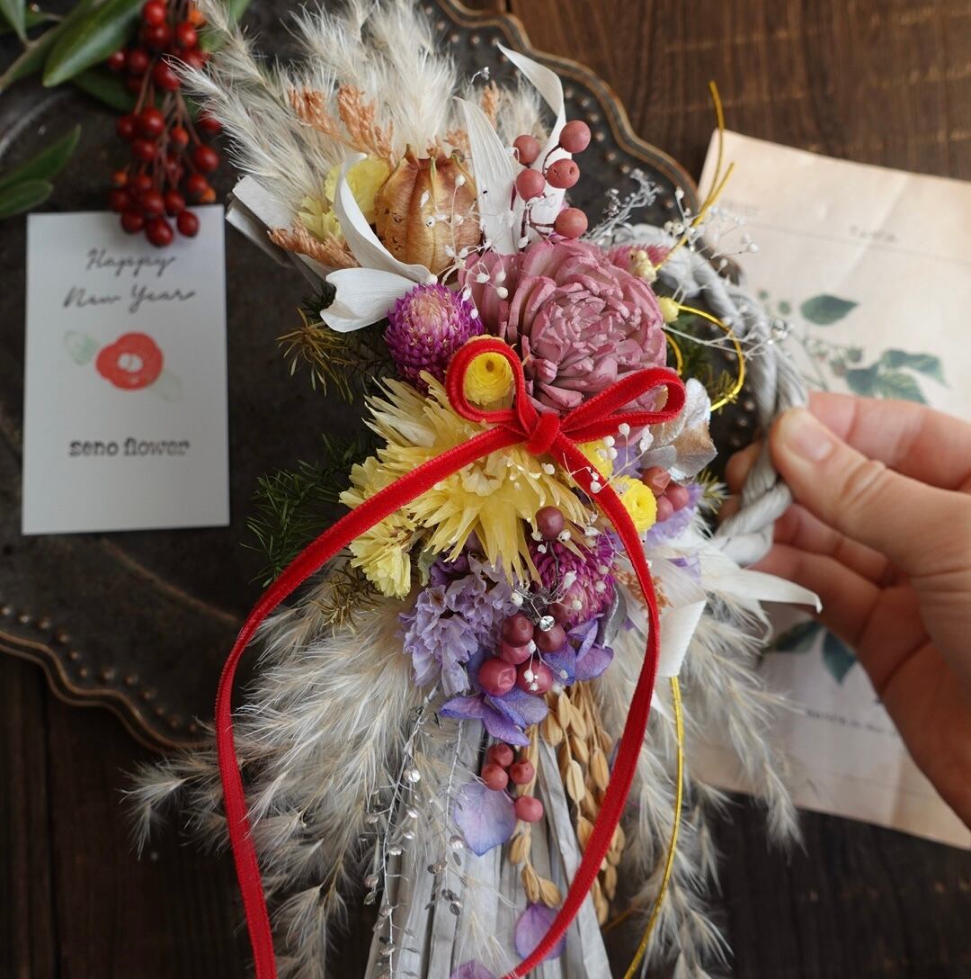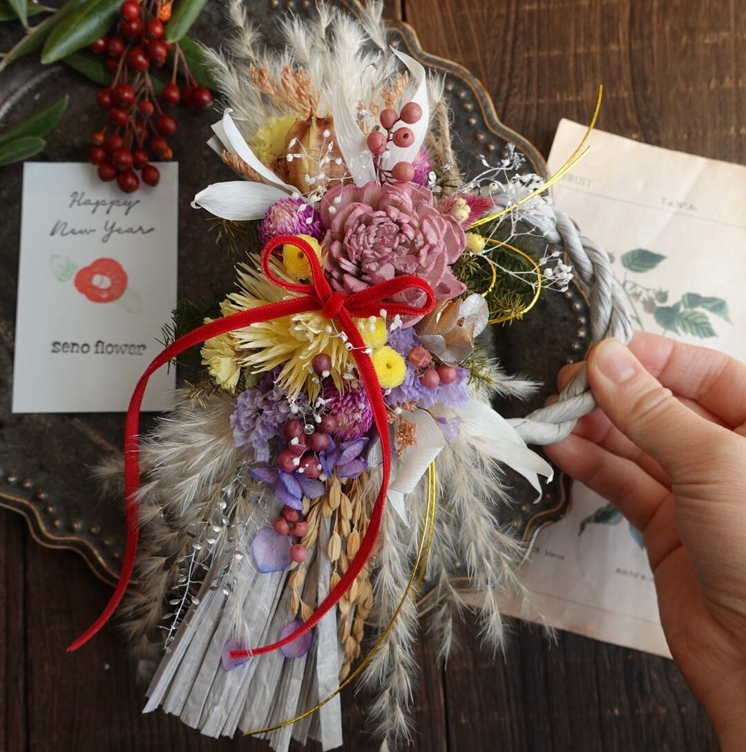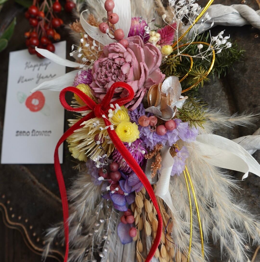小さいながらも華やかで洋風なお正月飾りです。
