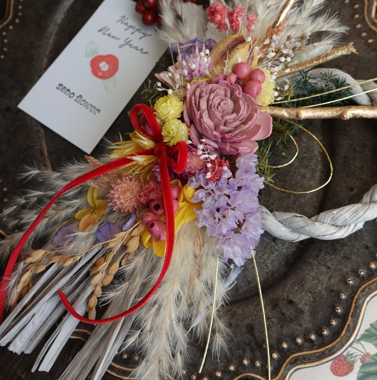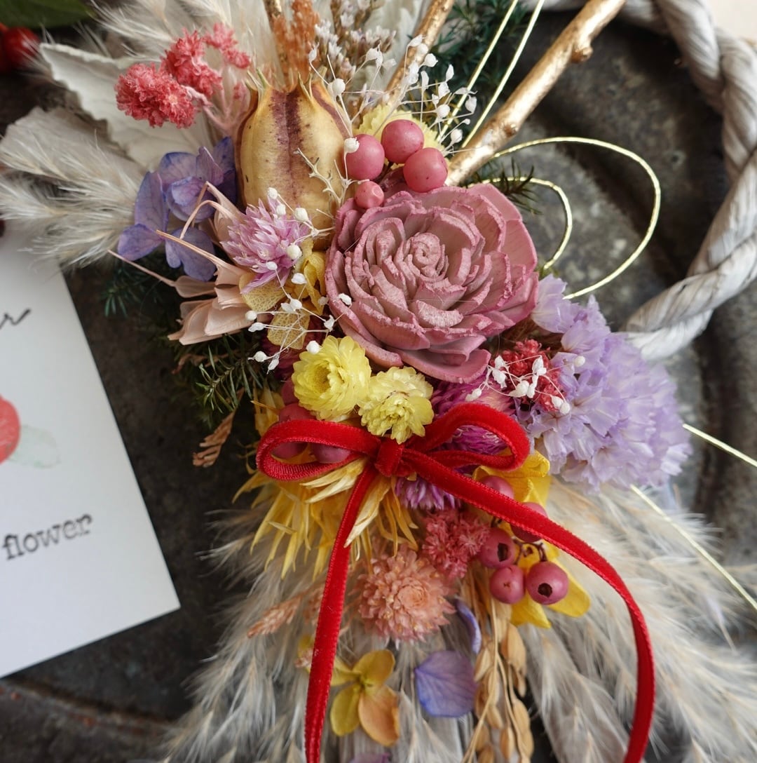 手にとって下さったお客様が少しでも長く楽しんでもらように 退色しにくい花材で仕上げるよう心がけています。