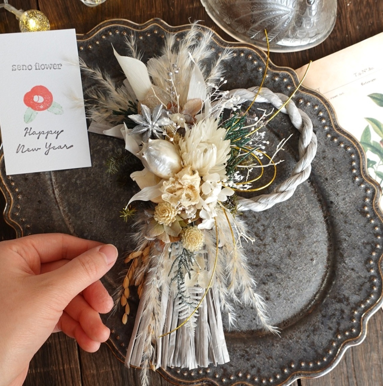 手にとって下さったお客様が少しでも長く楽しんでもらように 退色しにくい花材で仕上げるよう心がけています。