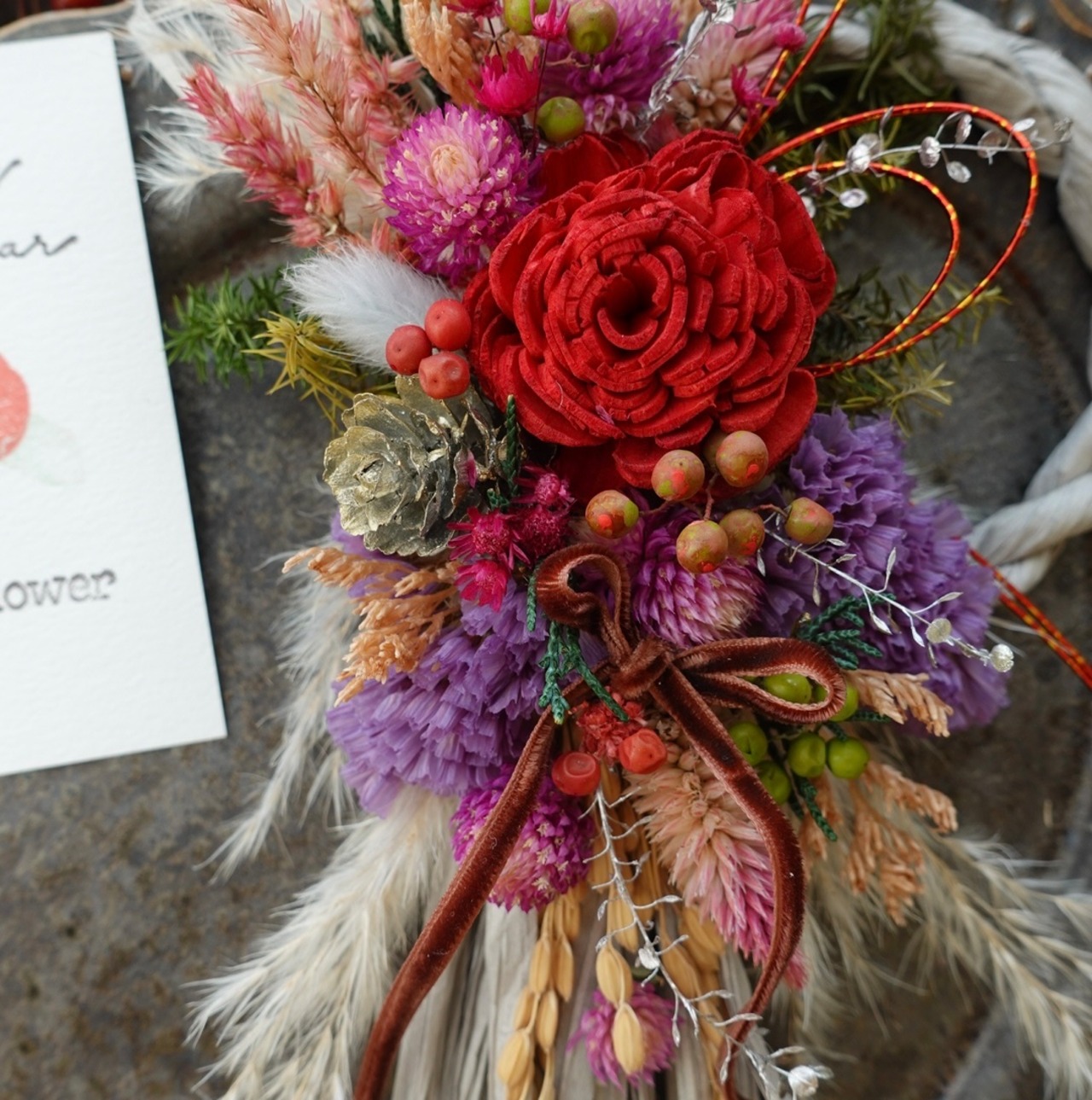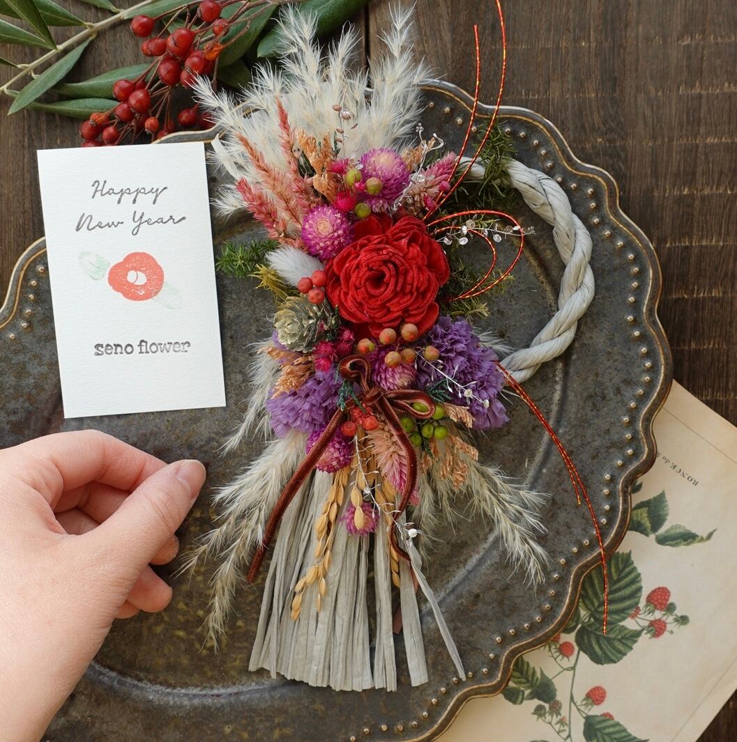 小さいながらも華やかで洋風なお正月飾りです。