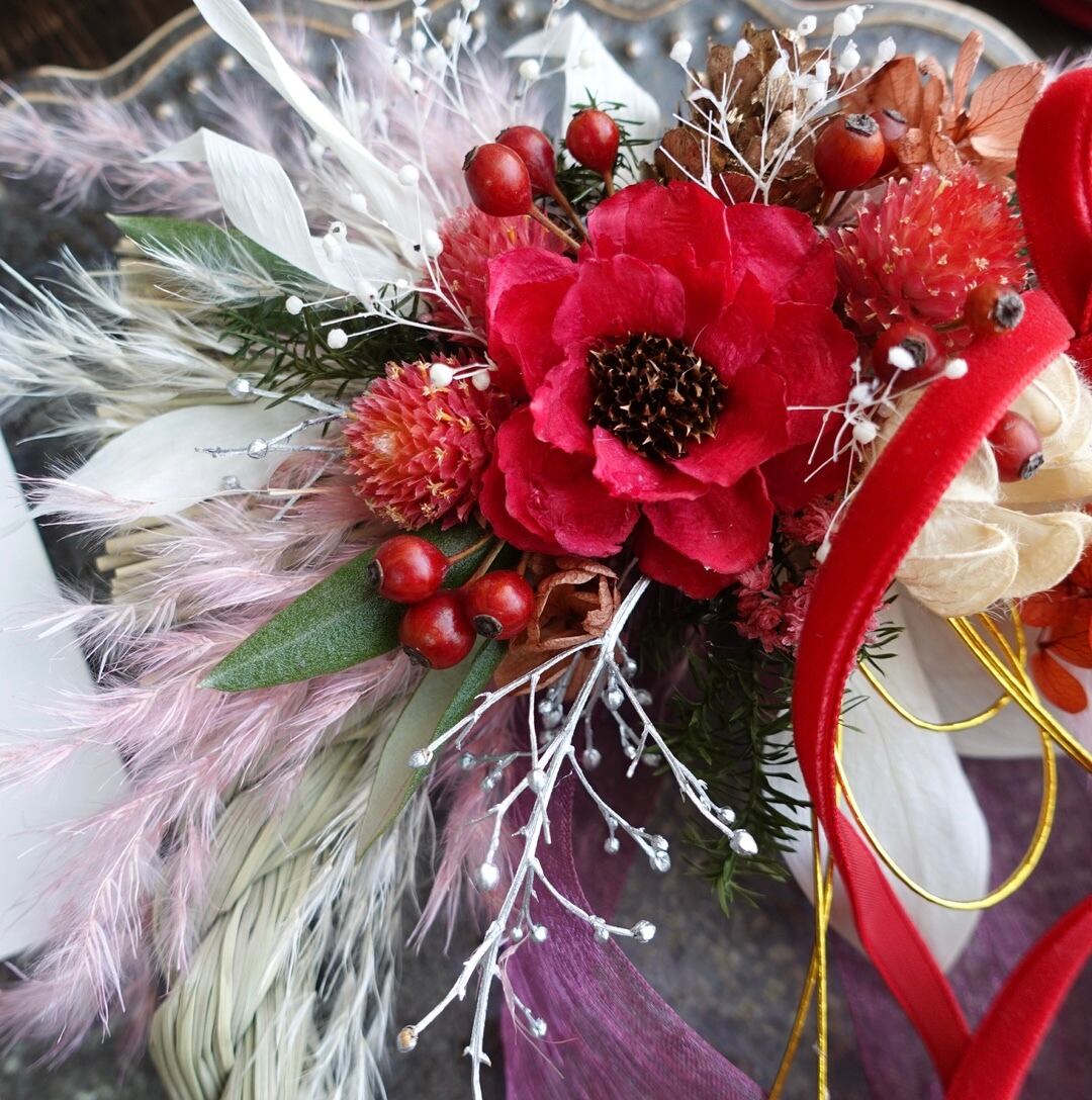 洋風なお正月飾りでクリスマスも兼用で長く使えるお飾りです。