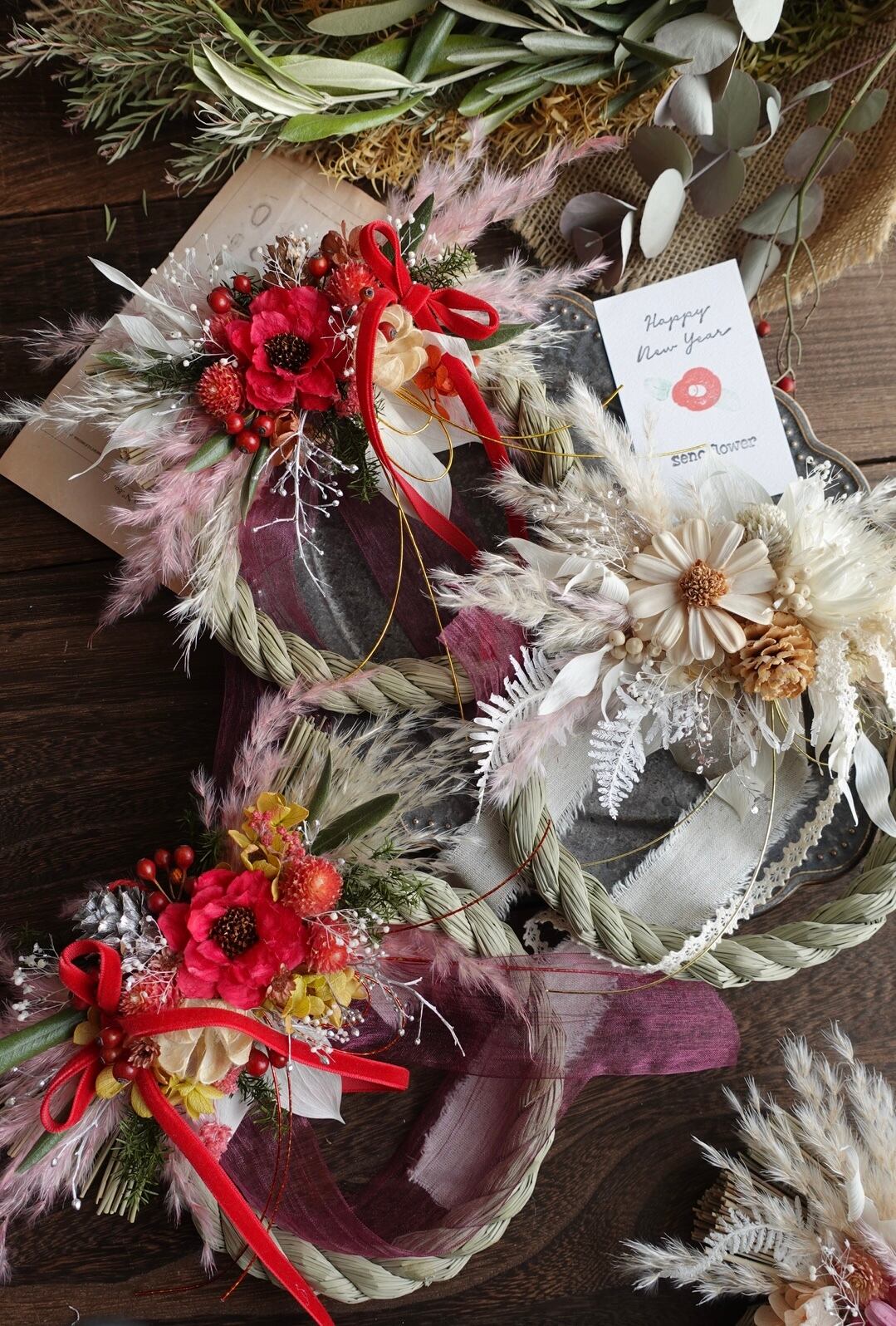 洋風なお正月飾りでクリスマスも兼用で長く使えるお飾りです。