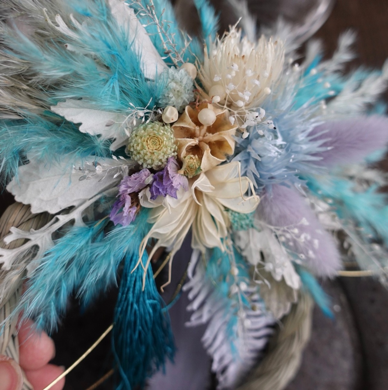 手にとって下さったお客様が少しでも長く楽しんでもらように 退色しにくい花材で仕上げるよう心がけています。