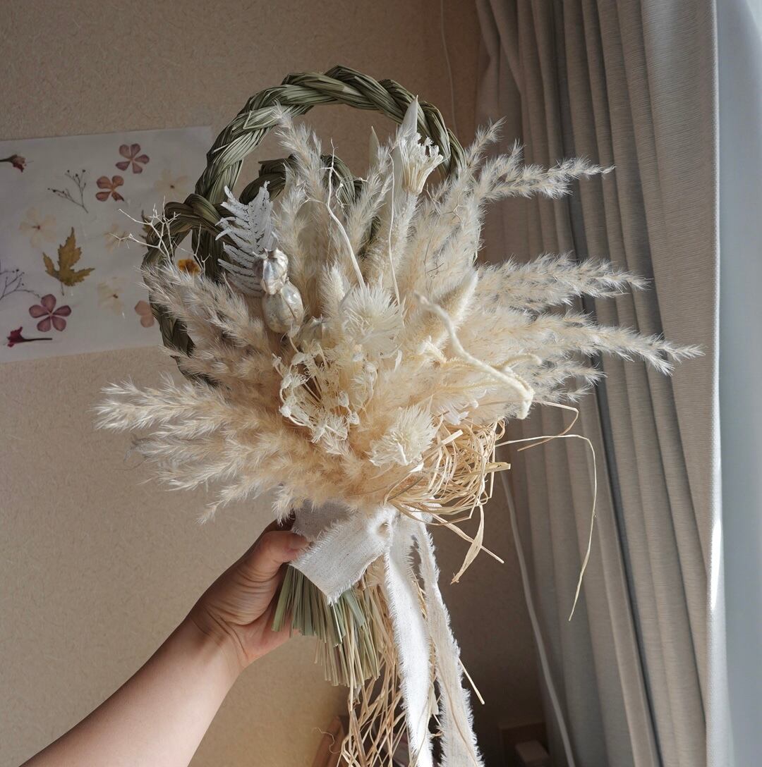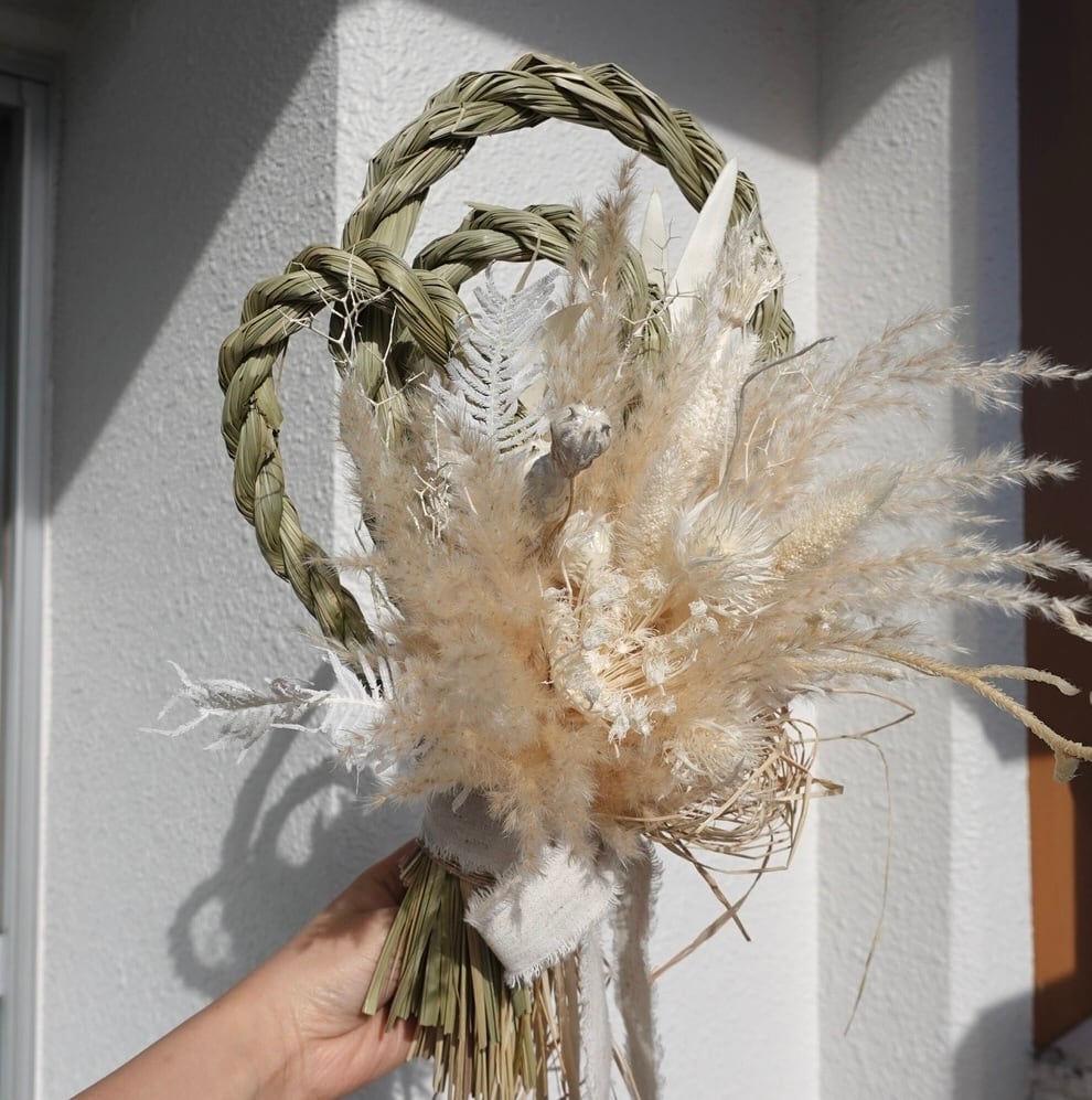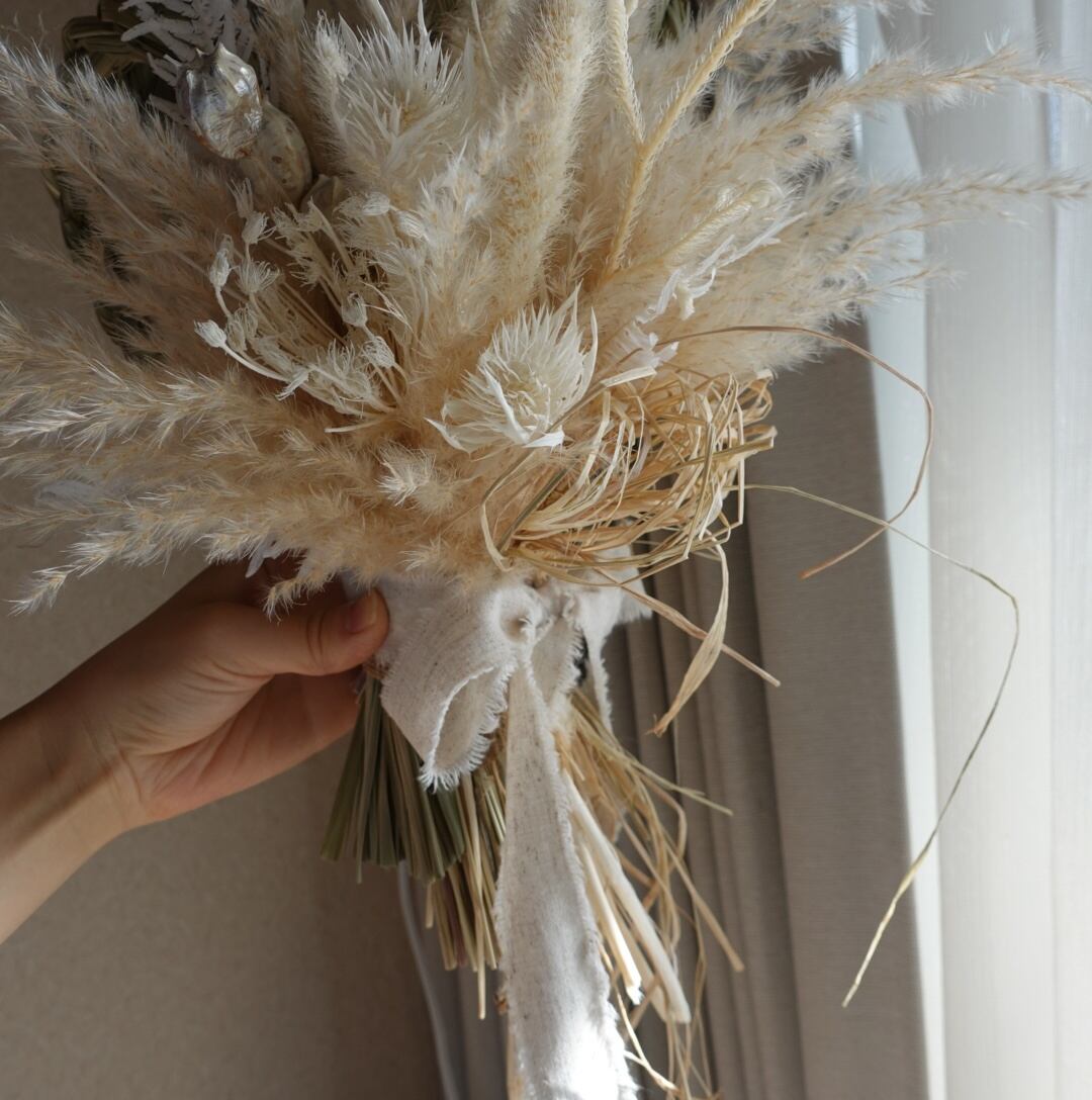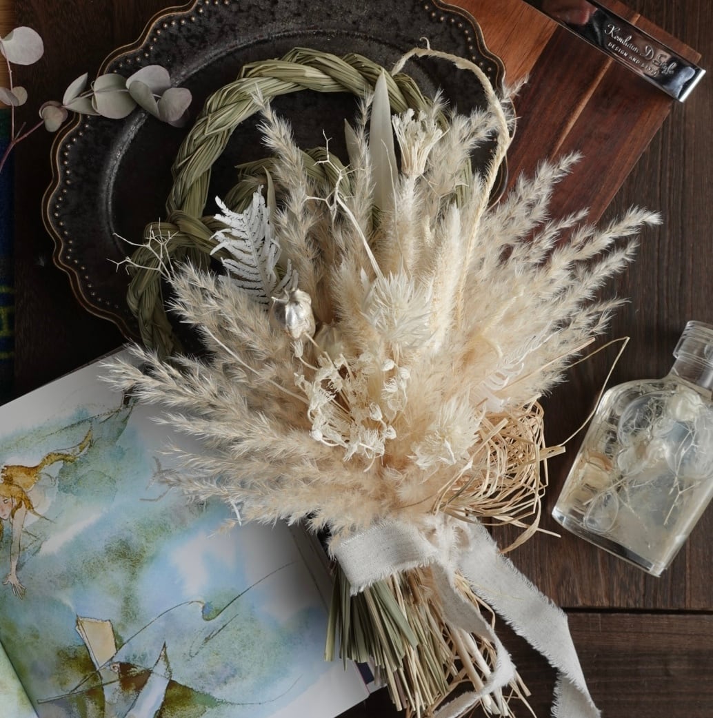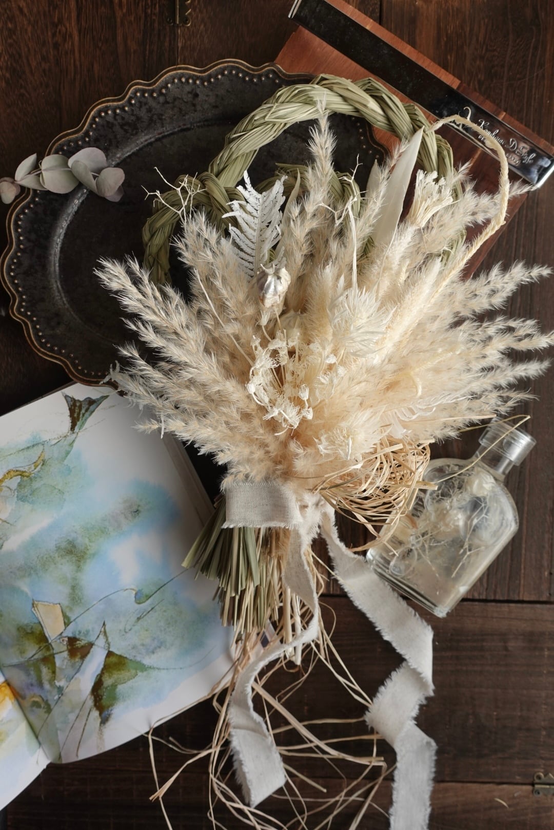 2026年 お正月飾り 初雪パンパスグラスのふわりブーケ