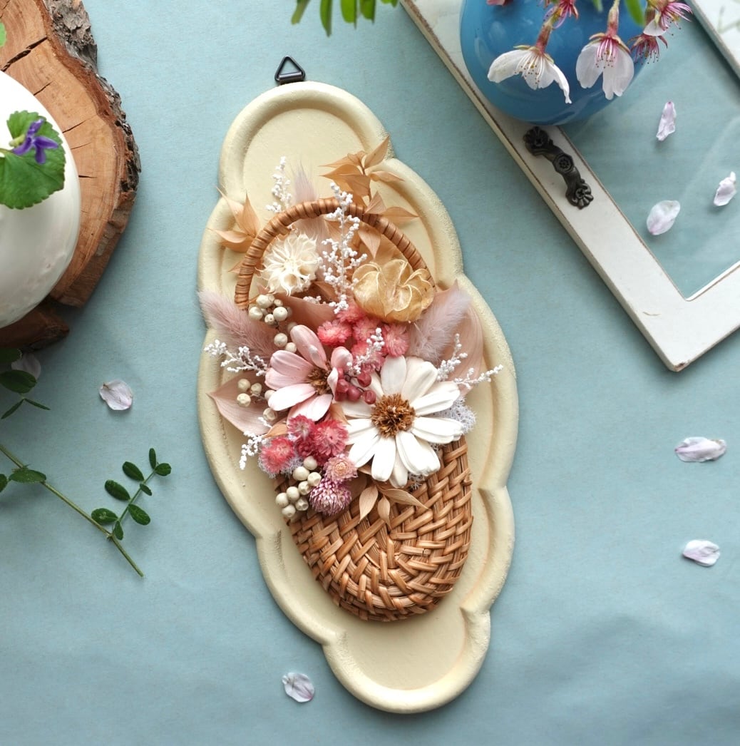 手にとって下さったお客様が少しでも長く楽しんでもらように 退色しにくい花材で仕上げるよう心がけています。
