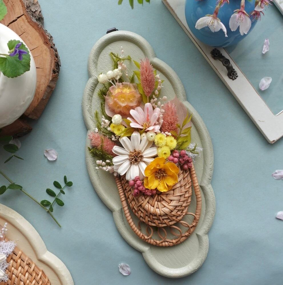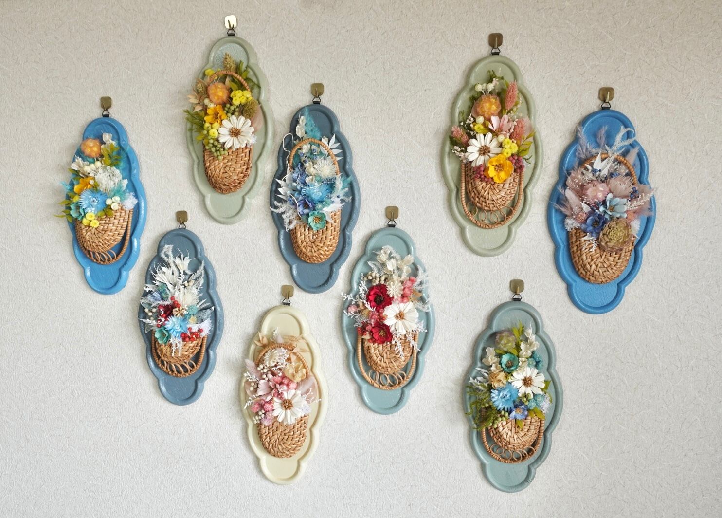 手にとって下さったお客様が少しでも長く楽しんでもらように 退色しにくい花材で仕上げるよう心がけています。