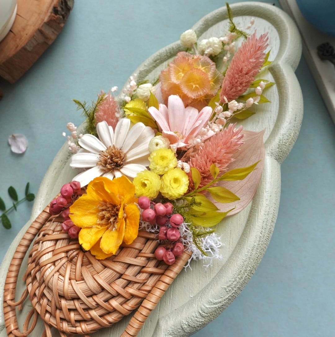 ドライフラワーとプリザーブドフラワーをミックスしたお品です。