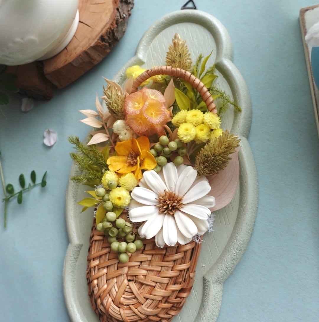 手にとって下さったお客様が少しでも長く楽しんでもらように 退色しにくい花材で仕上げるよう心がけています。