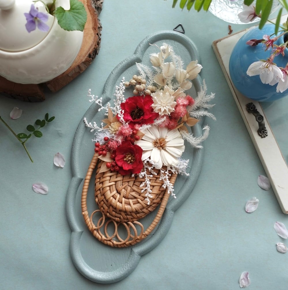 手にとって下さったお客様が少しでも長く楽しんでもらように 退色しにくい花材で仕上げるよう心がけています。