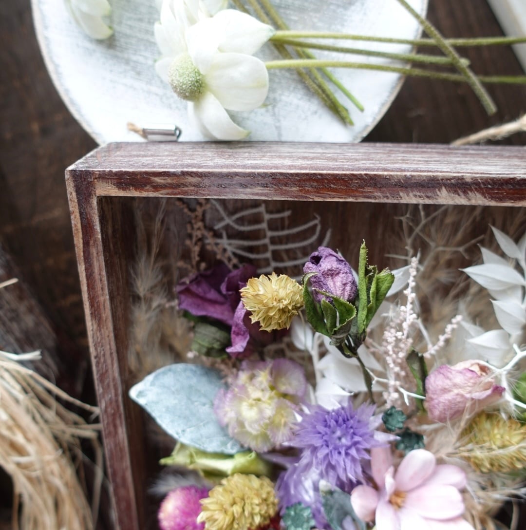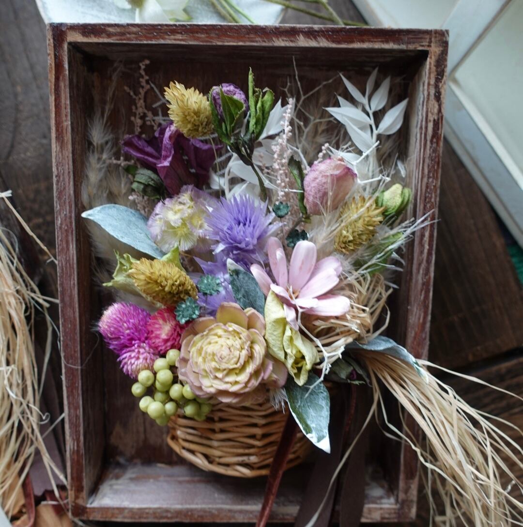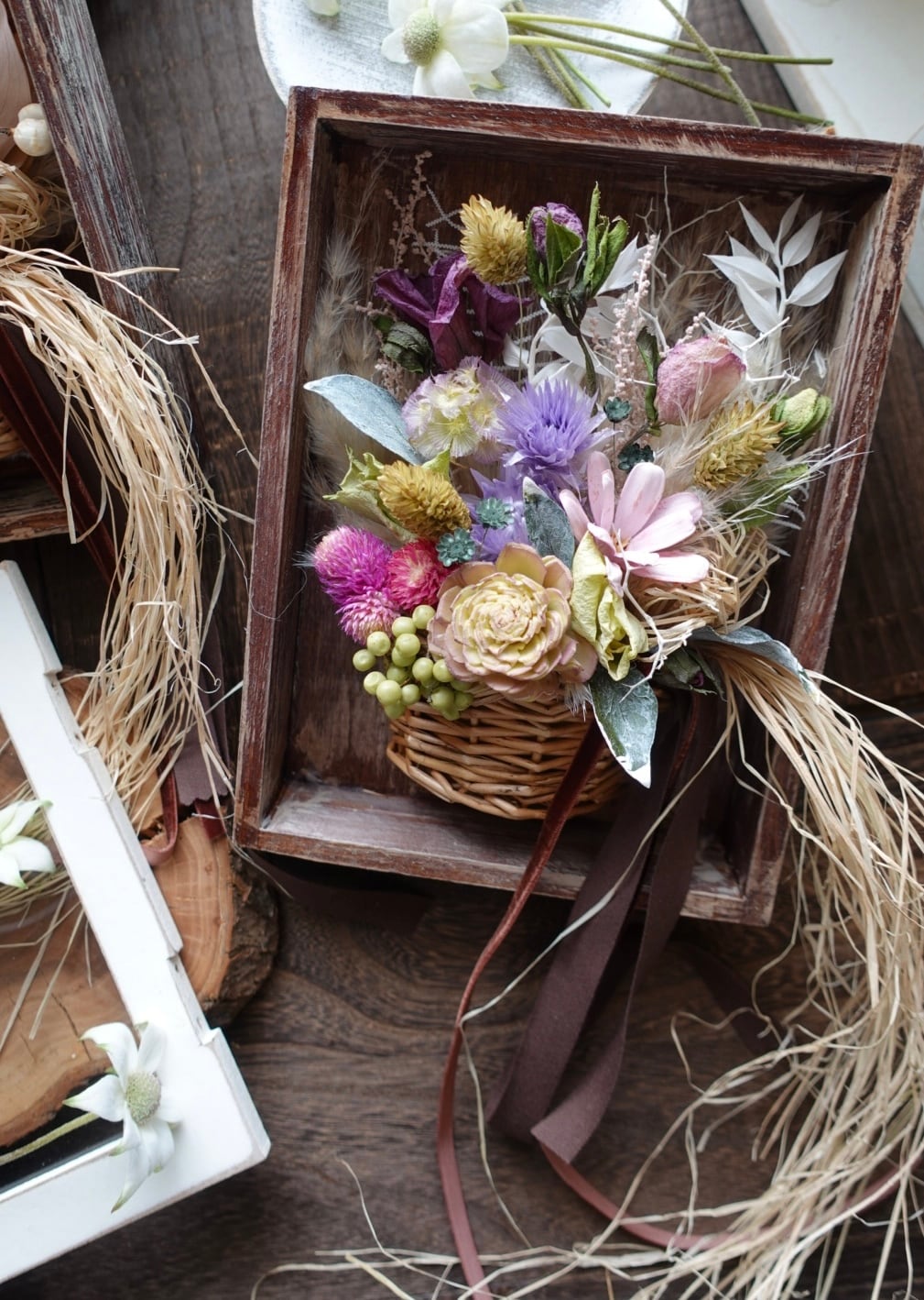 ドライフラワーとプリザーブドフラワーをミックスしたお品です。