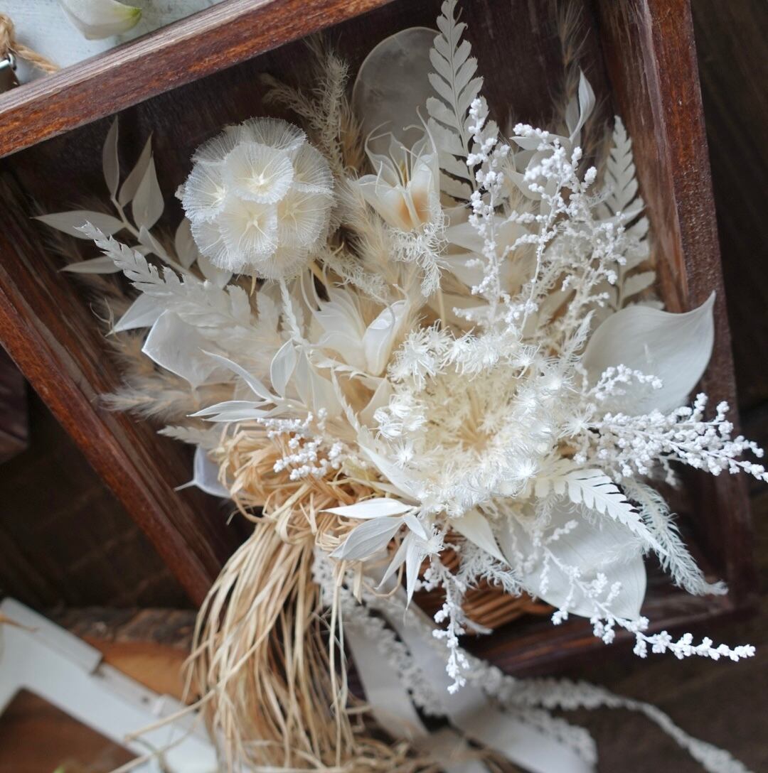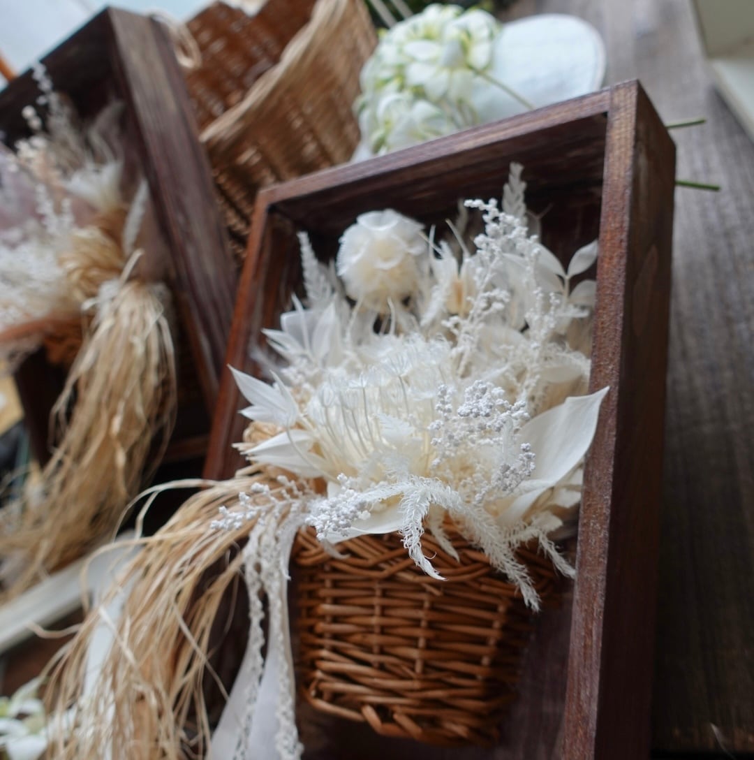 手にとって下さったお客様が少しでも長く楽しんでもらように 退色しにくい花材で仕上げるよう心がけています。
