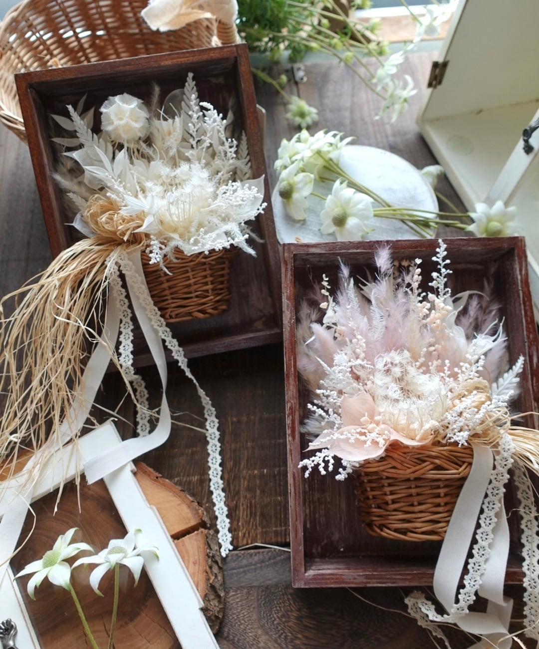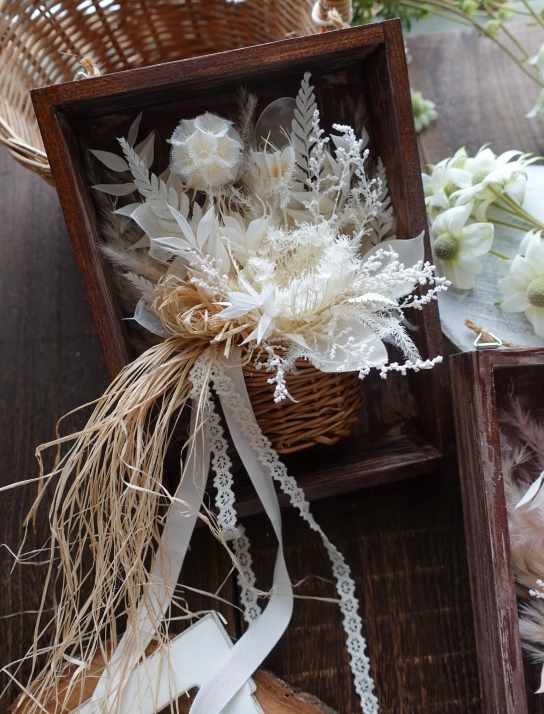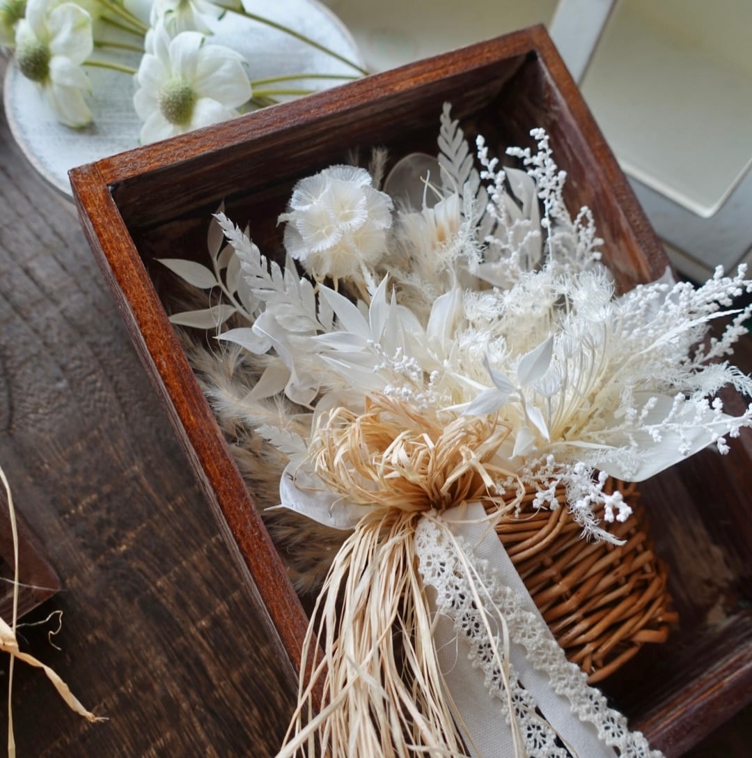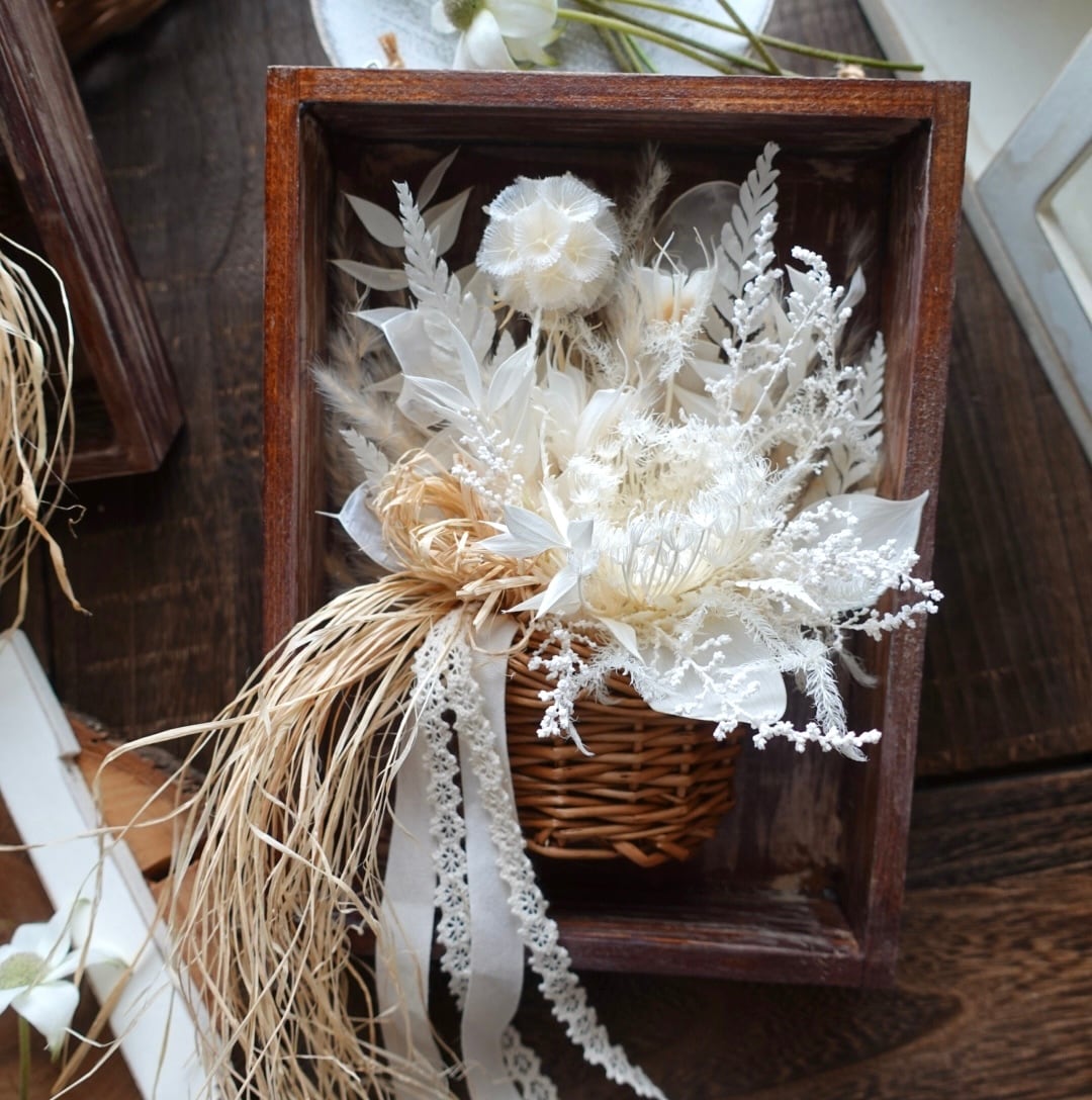 ドライフラワーとプリザーブドフラワーをミックスしたお品です。